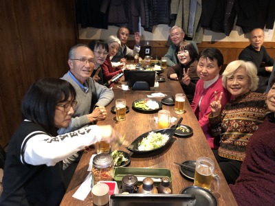 17:00から 「ごちや 天神」で19名参加で食べ飲み放題の和やかなおしゃべり