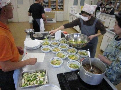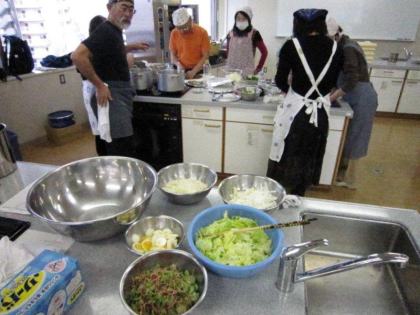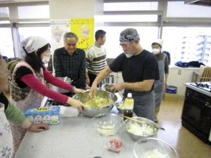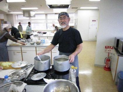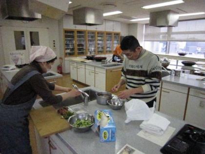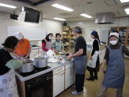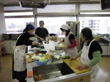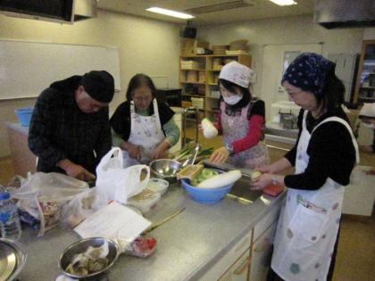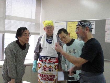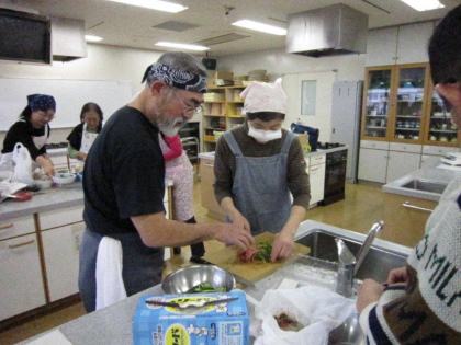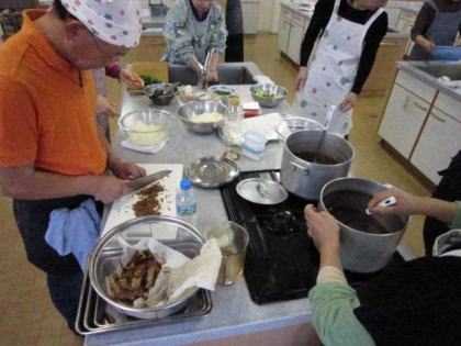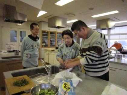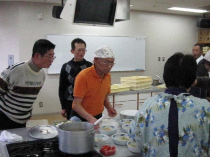 皆さんの表情は真剣そのもの、男性の方々はお家でも台所でこんな風に奥さまのお手伝いをなさっているのでしょうか?頼もしいですね。