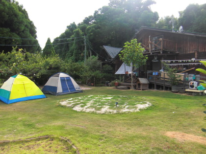 夜は、寝袋持参の人、キャンピングカー牽引の守田さん、車中泊の人と三々五々にコテージ風の阿部邸でお世話になりました。お庭にテントも二張り張ってありましたが、雨でもあったし、今回は利用しませんでした。