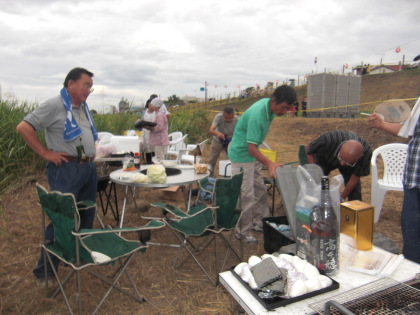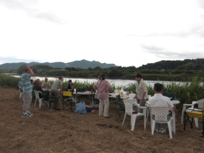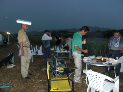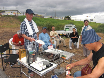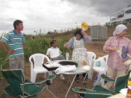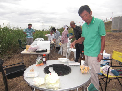| 午後6時頃、8時開始なのでまだ人影はまばらです。 | 6時頃からバーベキューを始めました |