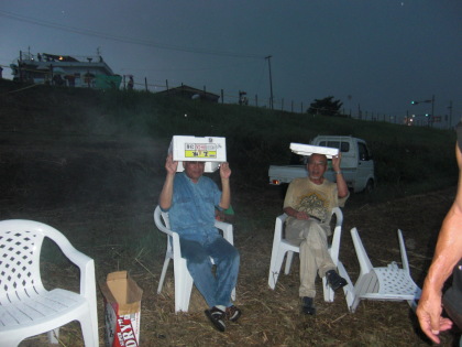 バーベキューの途中も空に黒い雲が広がり、細切れに小雨が落ちましたが、みんなの強い願いが届いてか、どうにか8時からの花火大会は予定通りはじまり、久しぶりに大空にはじける花火に心を奪われました。