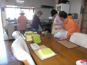 | 作っていただいたお弁当をみんなで詰め込み | となりのキーウィー園は今年もどっさり、見事でした。 |