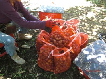 何日か早かったせいか、今年は虫食いも少なかったように感じました。粒の大きさはいつも変わらず、ほんとにすごいです。なにせ20数本の栗の木、今年は6人での作業でしたが、慣れてきて手際も良くなってきましたので、スムーズに進みました。(動画をご覧ください)