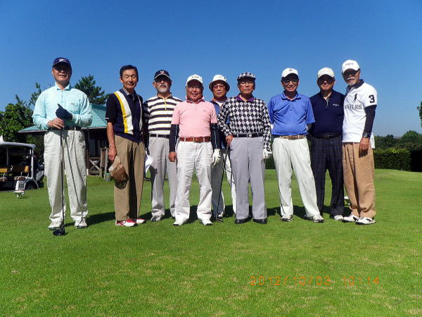 ゴルフの参加者は今年は9人の3組。場所は当初の予定から変更になって「くまもと城南カントリークラブ」。