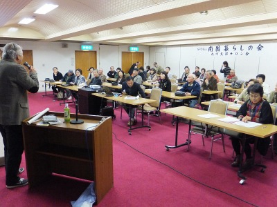 NPO法人「南国暮らしの会」が誕生した背景、会の目的、活動等、資料を配布して説明してい