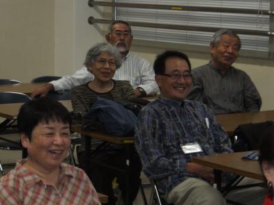 ここの部屋はインターネット環境がなかったのでスマートフォンのテザリング利用で無線接続。iphoneでの接続がうまくいかず、もたもたして結局蓑毛会員の アンドロイドで6台のパソコンにつなぎました。支部所有のプロジェクターも持ち込みました。