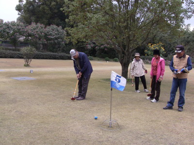 増田先生お勧めの「秀ラーメン」の昼食を済ませて、まずはグランドゴルフ交流会から。