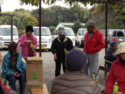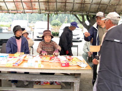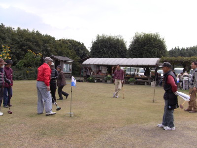そんな中での驚きは、初めて体験の春日井さんが2ラウンドで3個ものホールインワン。見てなければ、うそでしょ、と言いたいところですが、地元のベテランさんも驚くほんとの話ですものね。もちろん全員の中でもトップでした(総スコアは別として)。このグランドゴルフの良い点は、経験者も未経験者も同じ土俵で楽しめるというところでしょうね。和気あいあいの表彰式ではお土産をたくさんいただきました。